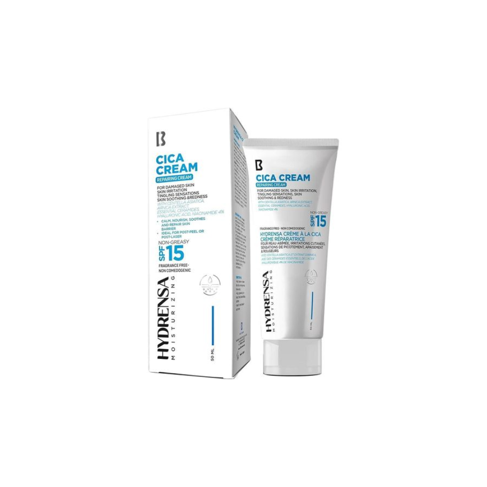كريم هيدرينسا سيكا هو كريم مرطب بسعة 50 مل مع عامل حماية من الشمس 15، مصمم لإصلاح البشرة الحساسة أو المتهيجة وتهدئتها وحمايتها. يساعد مكونه الرئيسي، سيكا (سنتيلا آسياتيكا)، على استعادة حاجز البشرة، وتقليل الاحمرار والالتهاب، وتعزيز الشفاء. توفر تركيبته ترطيبًا عميقًا وحماية من الشمس، مما يجعله مثاليًا للاستخدام اليومي لجميع أنواع البشرة، وخاصة الجافة والحساسة، أو التي خضعت لعلاجات مثل الليزر.