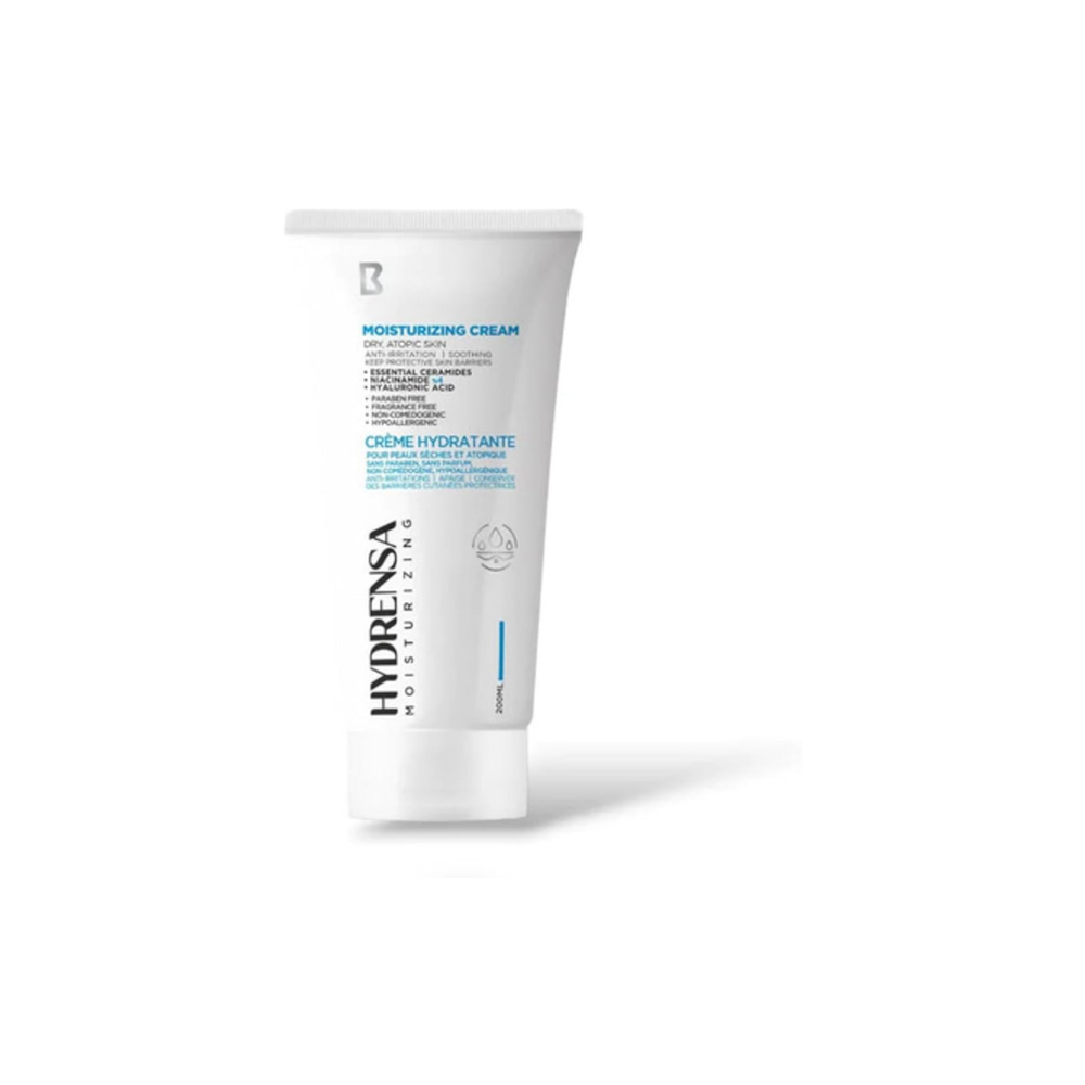 كريم هيدرينسا المرطب ٢٠٠ مل أبيض، كريم سريع الامتصاص وغير دهني للبشرة الجافة والحساسة والمعرضة لحب الشباب. يوفر ترطيبًا مكثفًا، ويخفف التهيج، ويقوي حاجز البشرة الواقي بفضل مكوناته الغنية بالنياسيناميد والسيراميد وحمض الهيالورونيك. مناسب للوجه والجسم، وللاستخدام اليومي لجميع الأعمار.